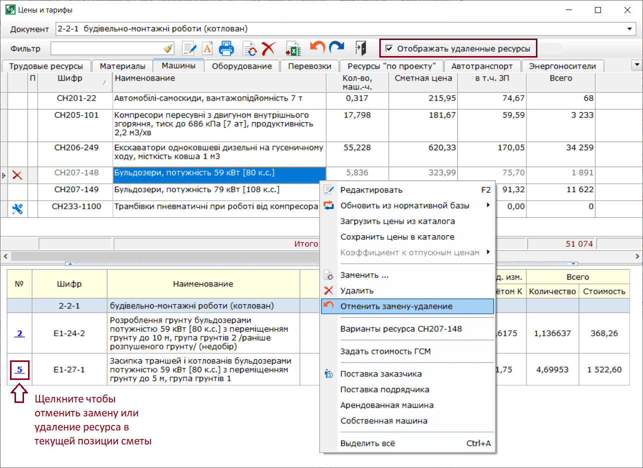 - В локальной смете реализована возможность удалить ресурс или группу выбранных ресурсов из состава нормы с помощью «горячих» клавиш Ctrl+Delete.