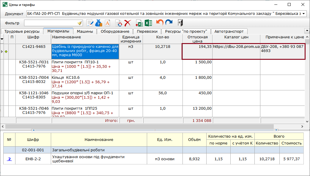 - В отчете «Сводная ведомость» расшифровка стоимости материалов и оборудования дополнена отпускными ценами.