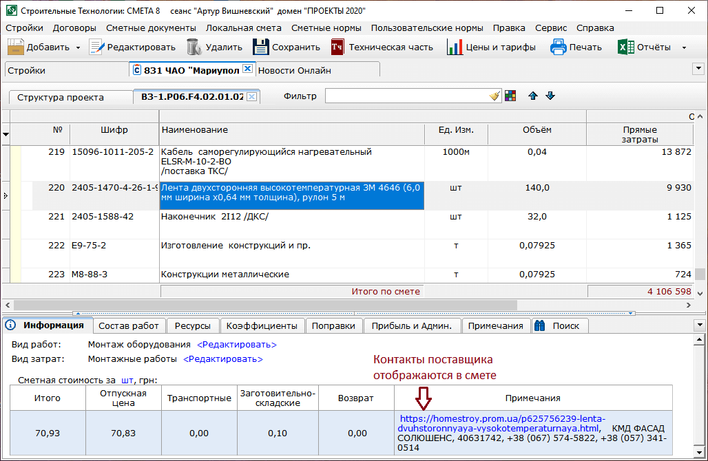 - При восстановлении сметной документации, договорной цены и акта приемки выполненных работ из файла формата «СМЕТА 8» и «СТС-7» в стройке и договорной цене автоматически заполняется информация о заказчике, генподрядчике, подрядчике и проектировщике.