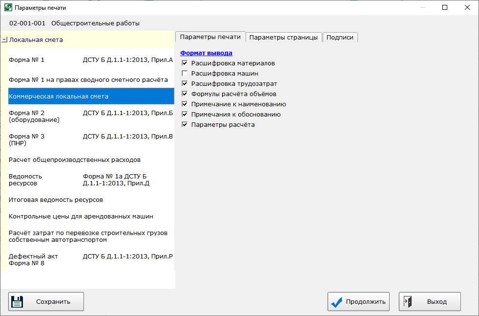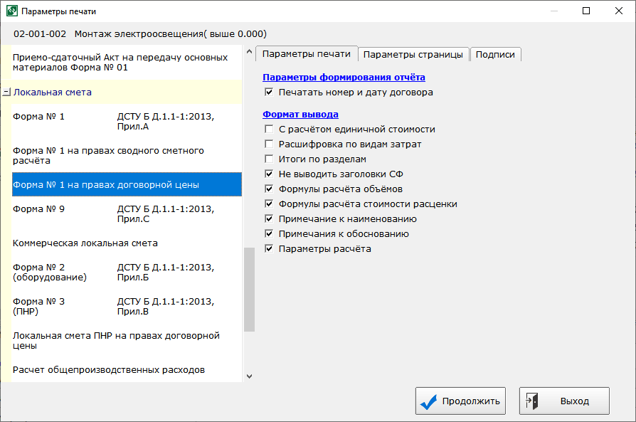 - При печати локальных смет реализована возможность выбора ориентации страницы «Книжная» или «Альбомная».
