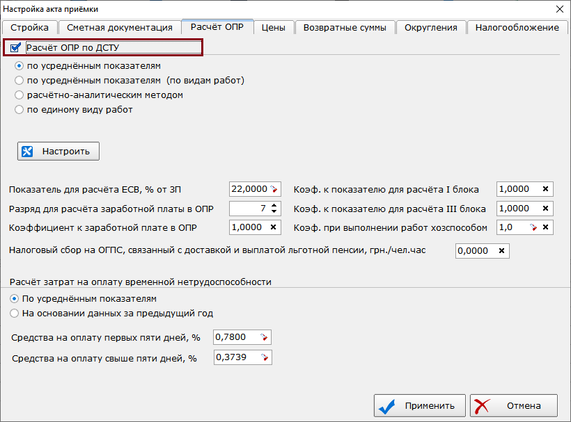 - Окно настроек параметров расчёта стоимости проектных работ дополнено возможностью опционально включать в расчёт стоимость оборудования для любой таблицы усреднённых показателей (ДСТУ Б Д.1.1-7:2013 п.5.3).
