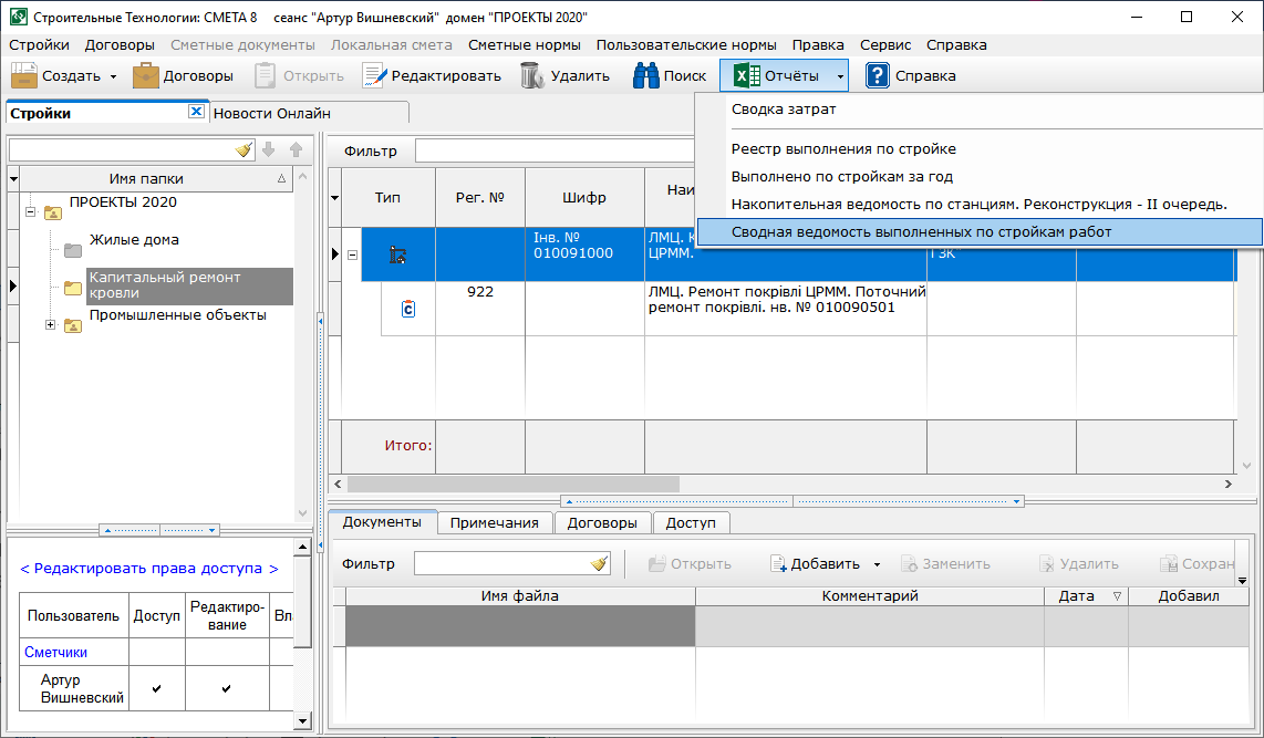 - Реализованы печатные формы документов: «Локальная смета на правах сводного сметного расчета», «Локальная смета на правах договорной цены».